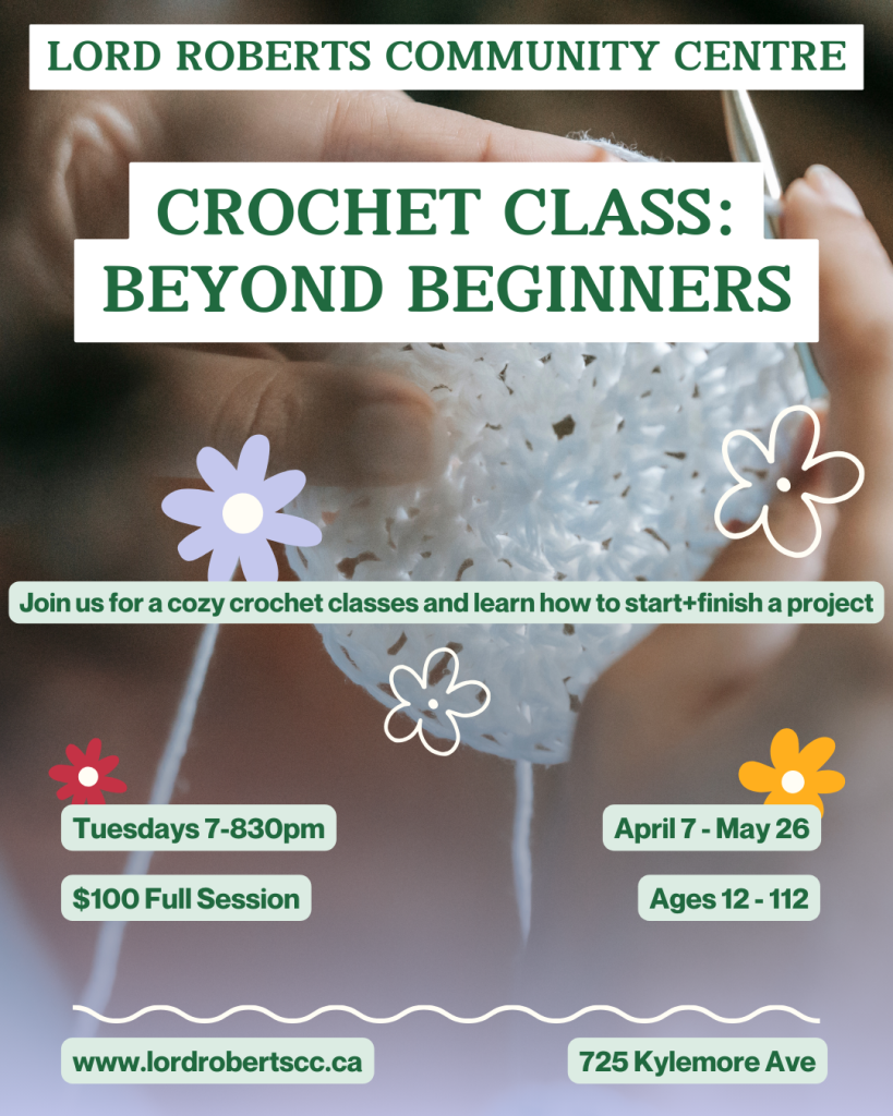 Discover the relaxing and creative art of crochet in this beginner-friendly class at Lord Roberts Community Centre!